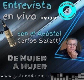 Este sabado 12 de Junio del corriente año, entrevista en vivo con el salmista, Apóstol Calos Salatti, desde el departamento de San Rafael, Mendoza, la entrevista se realizara durante el programa De Mujer a Mujer, conducio por Pamela e Ivana a las 19:30 por Fm Godsend.